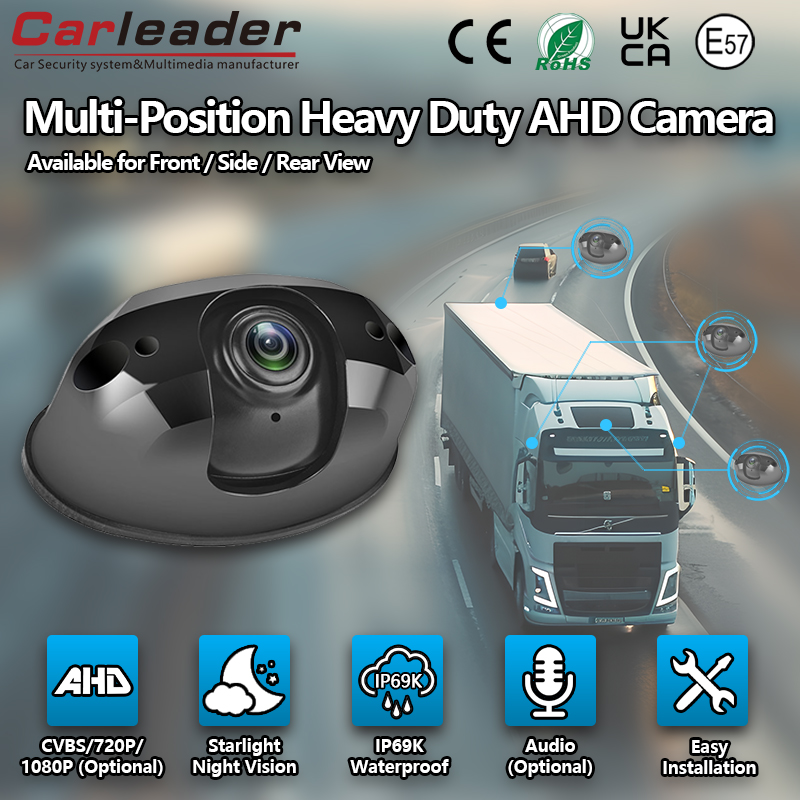 Στο πεδίο του οχήματος, CarleaderΚάμερα οπίσθιας όψης Super Wide Angle 1080P AHD Starlightχρησιμοποιούνται ευρέως σε φορτηγά, λεωφορεία, σχολικά λεωφορεία, μηχανολογικό εξοπλισμό RV και άλλα βαρέα οχήματα. Μπορεί να χρησιμοποιηθεί ως κάμερα μπροστινής, πλευρικής και οπίσθιας όψης και μπορεί ακόμη και να συνδυαστεί με MDVR για την επίτευξη εγγραφής βίντεο, απομακρυσμένης παρακολούθησης, διαχείρισης στόλου και άλλων λειτουργιών