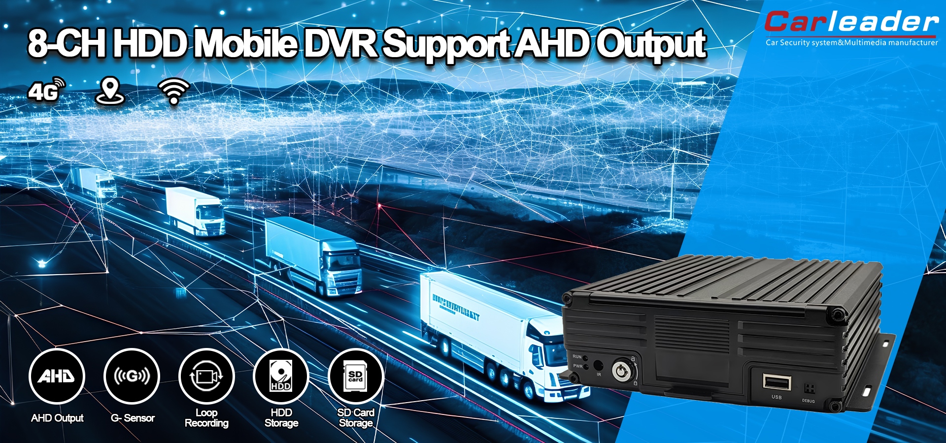 Carleader8CH 1080P HDD Mobile DVR Υποστήριξη Έξοδος AHDπροσφέρει μια αξιόπιστη, επεκτάσιμη και πλούσια σε χαρακτηριστικά λύση για σύγχρονη κινητή βιντεοπαρακολούθηση, διασφαλίζοντας ασφάλεια, ασφάλεια και λειτουργική ευφυΐα στο δρόμο.