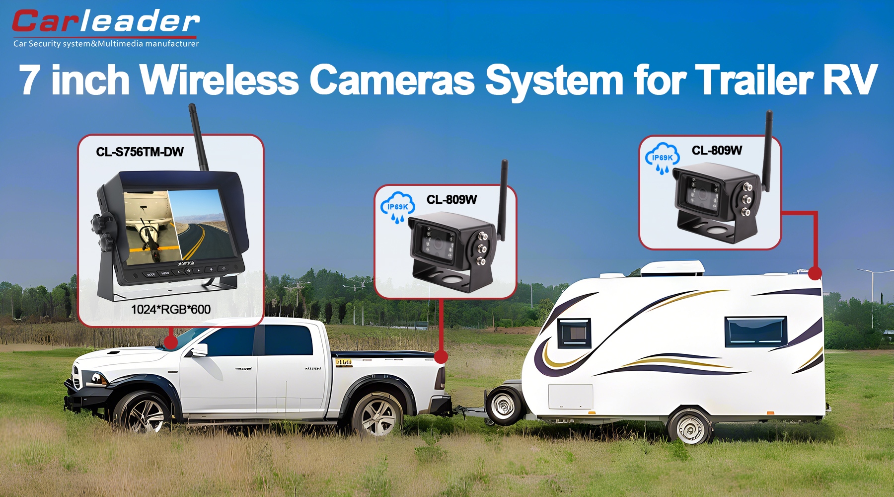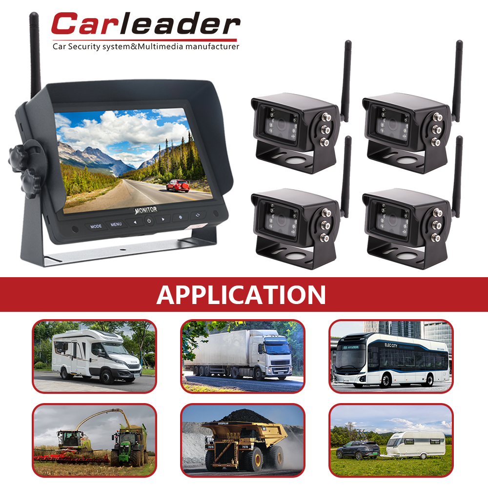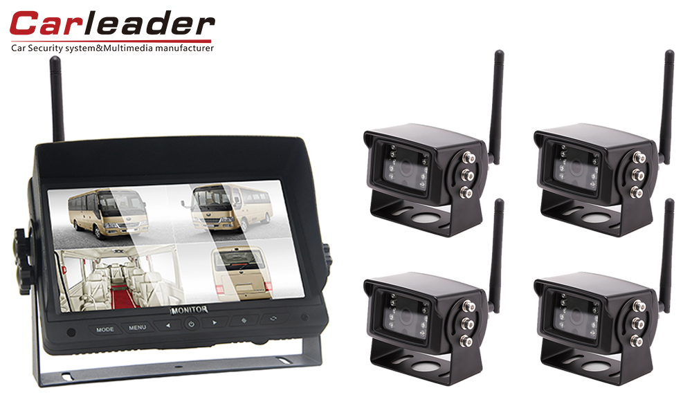CarleaderΨηφιακό ασύρματο σύστημα κάμερας 7 ιντσών 2,4G 2CH, ένα ασύρματο σύστημα παρακολούθησης υψηλής απόδοσης με υποστήριξη προβολής 2 slipt display, σε συνδυασμό με ασύρματη κάμερα 2 τμχ. Ψηφιακό πάνελ 7 ιντσών, αναλογία εικόνας 16 : 9, ανάλυση 1024 x 600 (RGB), παρέχει στον οδηγό υψηλή ευκρίνεια στην οδηγική εμπειρία.