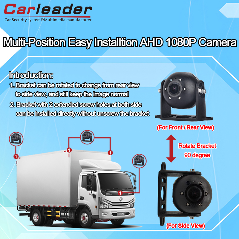 CarleaderAHD Heavy Duty Vehicle Εμπρός / Πλαϊνή / Πίσω όψη Κάμερα με οπή εγκατάστασης βραχίονα στο επάνω, κάτω, δεξιά, αριστερά, που επιτρέπει στην κάμερα να προσαρμόζει το στήριγμα της κάμερας ώστε να ταιριάζει σε διαφορετικές θέσεις κάμερας, όπως εμπρός, πλάγια και πίσω όψη, καθιστούν αυτήν την κάμερα πιο συμβατή για το σύστημα επιτήρησης της ασφάλειας του οχήματος.
