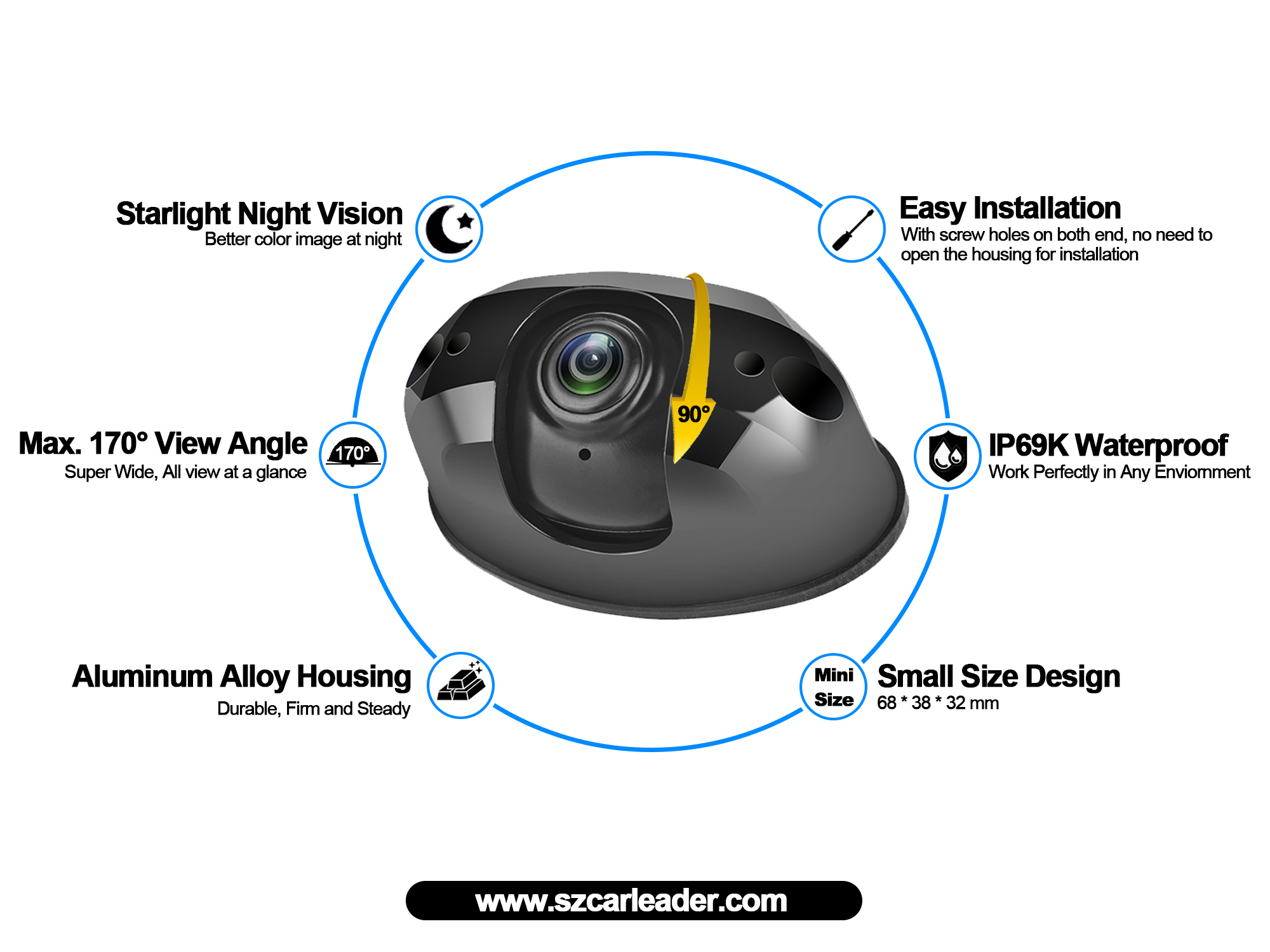 Η ευρεία θέαση 170 μοιρών AHD Η αδιάβροχη εφεδρική κάμερα βαρέως τύπου παρέχει στον οδηγό μια καθαρή εικόνα σε πραγματικό χρόνο κατά τη διάρκεια της διαδικασίας οδήγησης. Η εξαιρετικά μεγάλη γωνία του έως και 170°, περισσότερο για τον οδηγό για να παρέχει ένα ευρύ φάσμα παρακολούθησης, έτσι ώστε ο οδηγός να μπορεί να παρακολουθεί το περιβάλλον γύρω από το όχημα χωρίς τυφλά σημεία